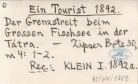 EIN TOURIST 1892 Der Grenzstreit beim Grossen Fischsee in der Tátra.