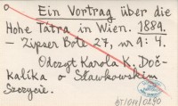Ein Vortrag über die Hohe Tátra in Wien. 1889