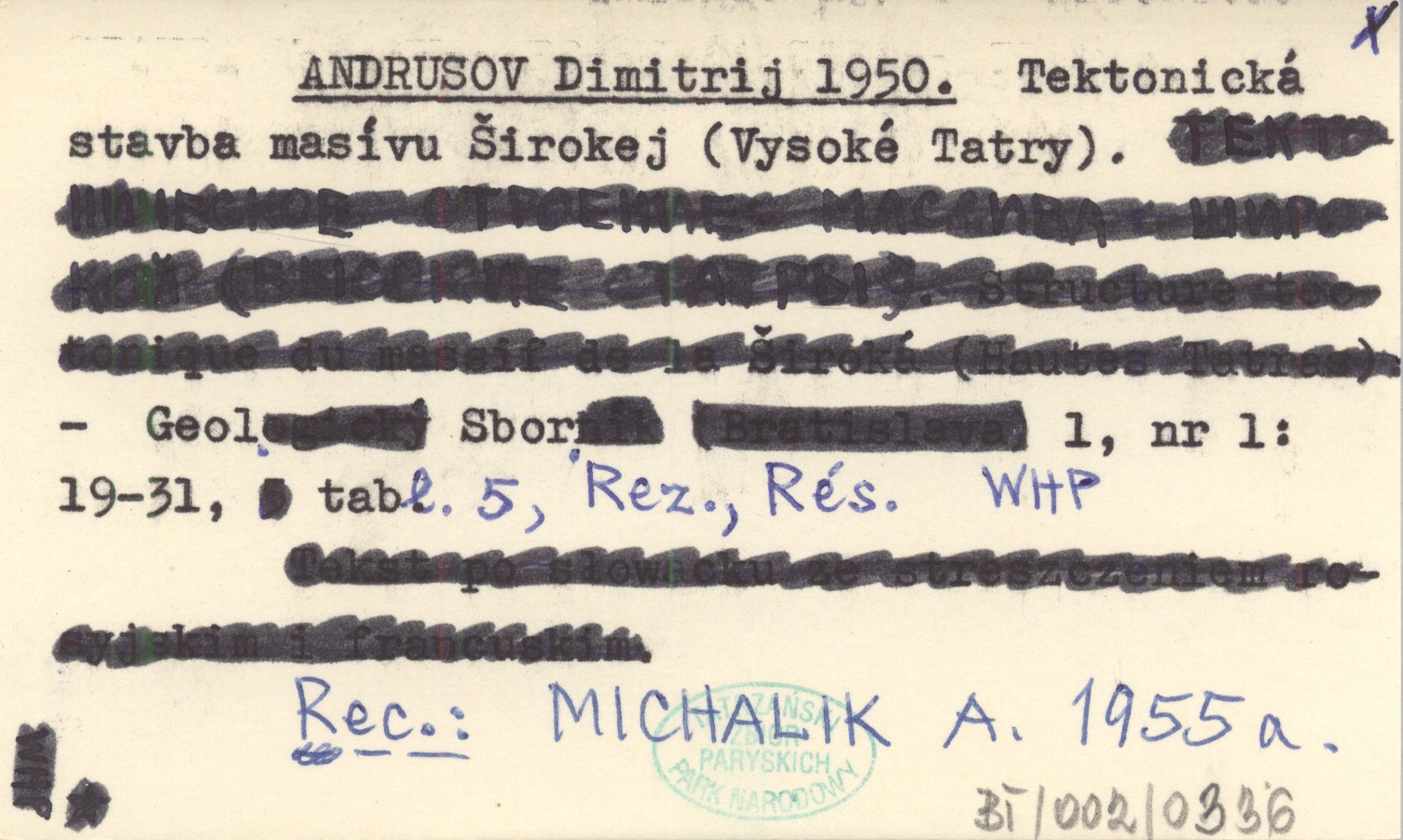 ANDRUSOV Dimitrij 1950 Tektonická stavba masívu Širokej (Vysoké Tatry).
