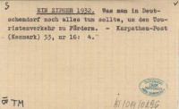 Ein Zipser 1932 Was man in Dautschendorf noch alles tun sollte, um den Touristenverkehr zu Fördern.