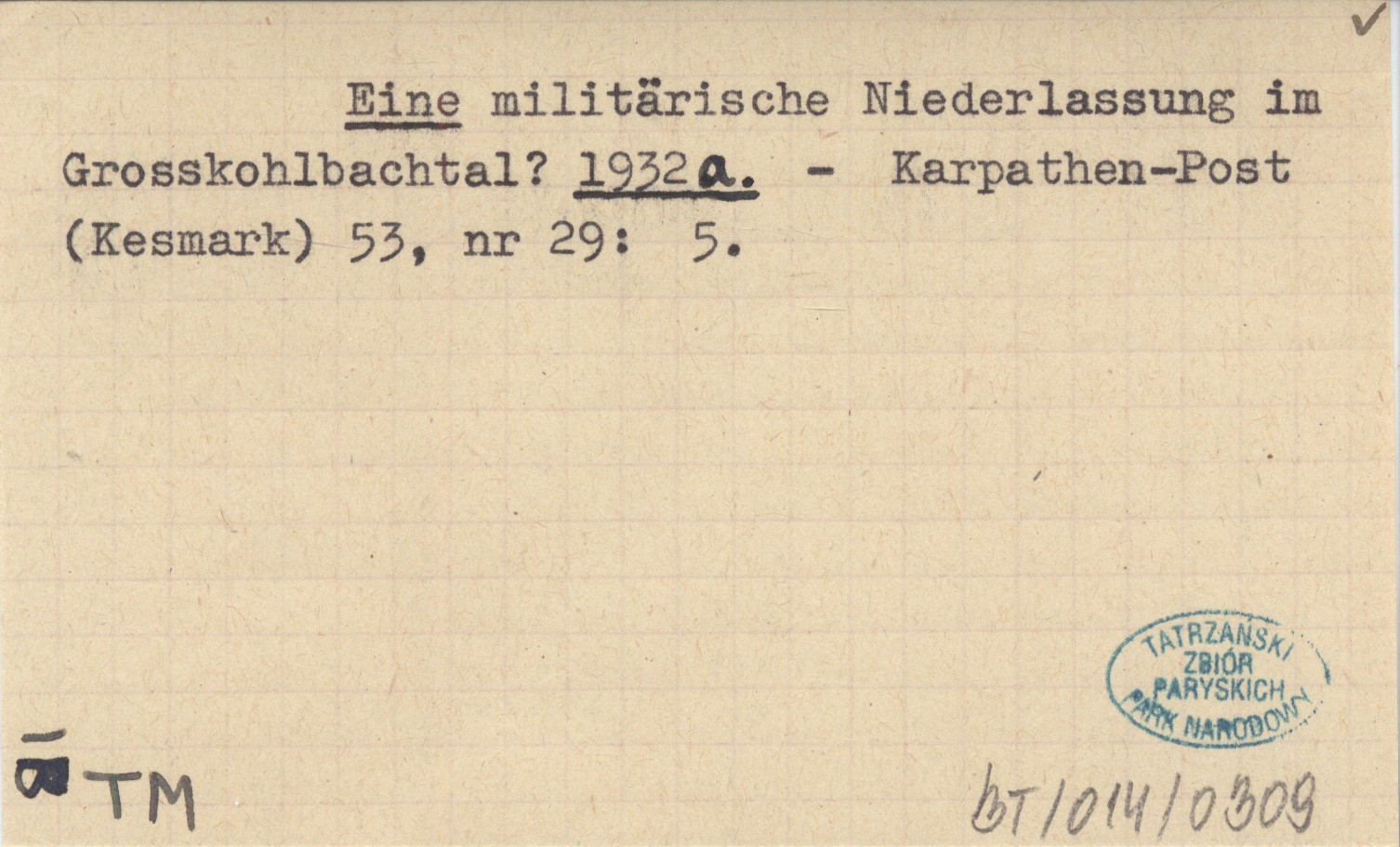 Eine militärische Niederlassung im Grosskohlbachtal? 1932 a