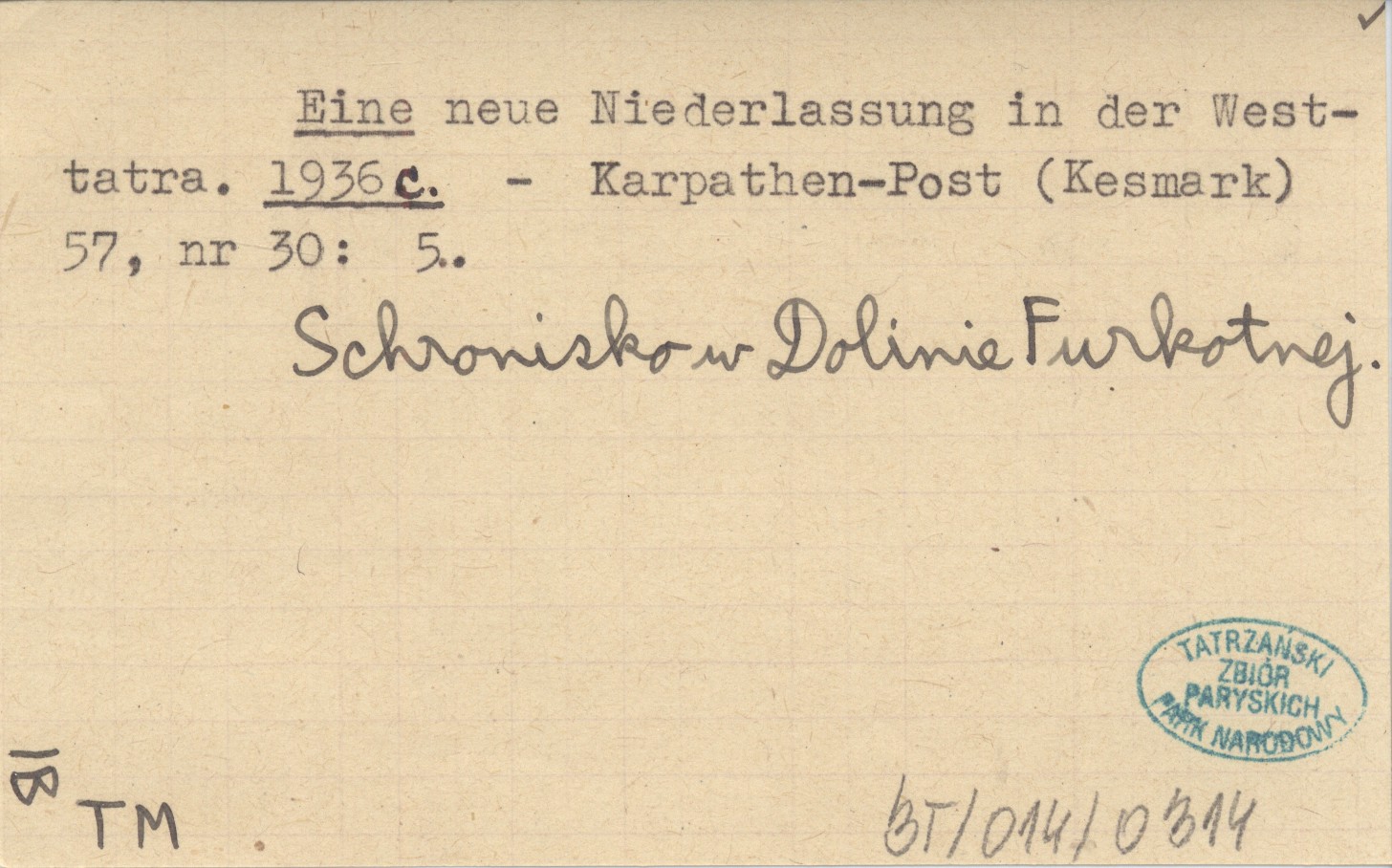 Karpathen-Post (Kesmark) , 57, nr 30: 5. Schronisko w Dolinie Furkotnej.