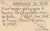 ANDRUSOV D. 1938 Deux coupes géologiques á travers les Carpathes occidentales.