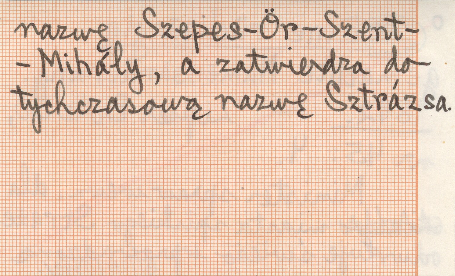 Zipser Bote, 30, nr 45: 4. Minister spraw wewnętrznych dla miasta spiskiego Straże odwołuje świeżo wprowadzoną nazwę Szepes-Ör-Szent-Mihály, a zatwierdza dotychczasową nazwę Sztrázsa.