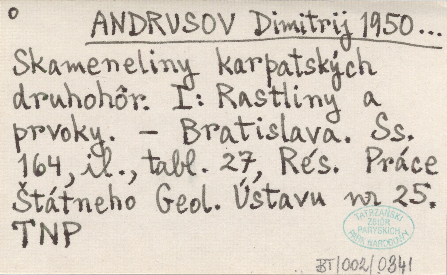 ANDRUSOV Dimitrij 1950... Skameneliny karpatských druhohôr. I. Rastliny a prvoky.