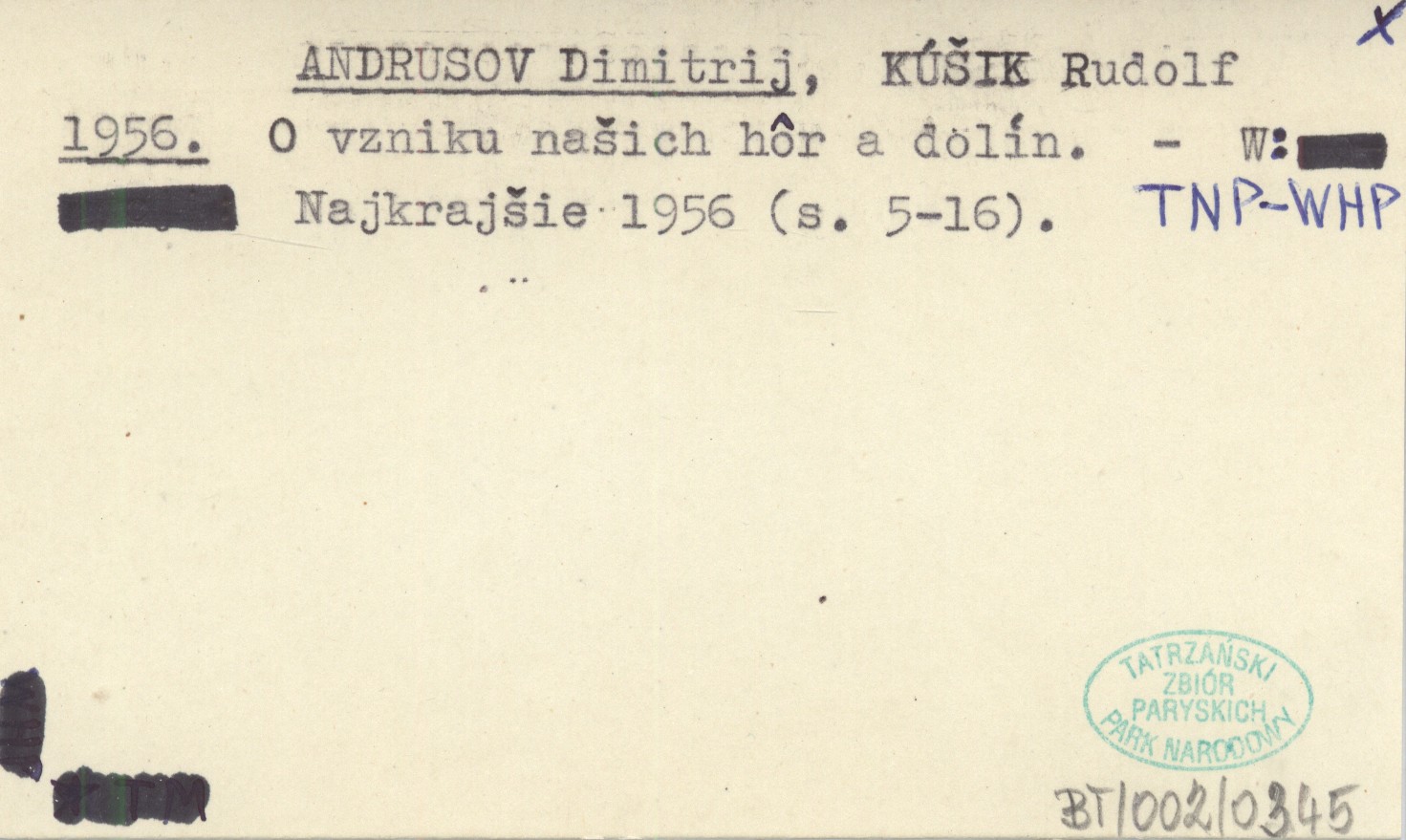 ANDRUSOV Dimitrij KÚŠIK, Rudolf. ; 1956 O vzniku našich hôr a dolín.
