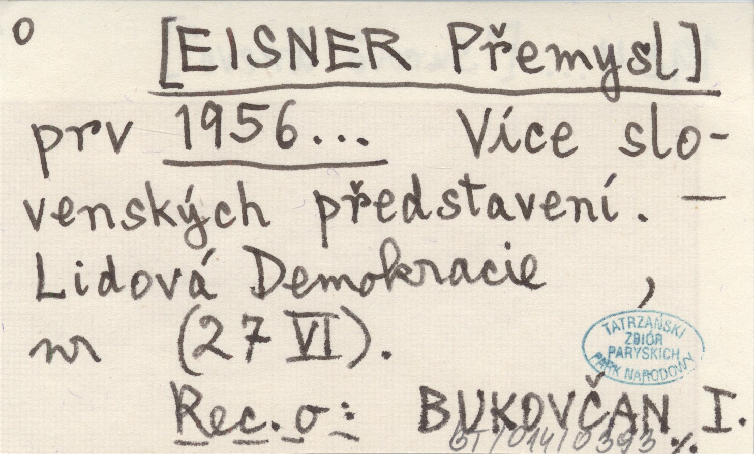 prv [EISNER Přemysl] 1956... Více slovenských představení.