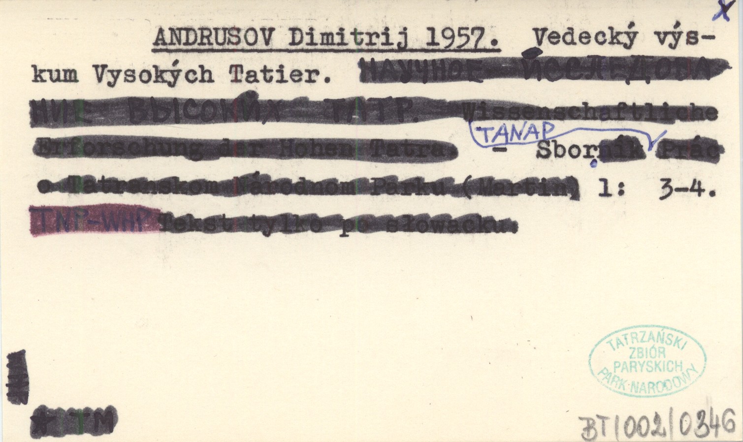 Projekt Digitalizacja fiszek z Bibliografi± Tatr i Podtatrza Witolda Henryka Paryskiego jest finansowany ze ¶rodków Ministra Kultury i Dziedzictwa Narodowego oraz Tatrzańskiego Parku Narodowego.