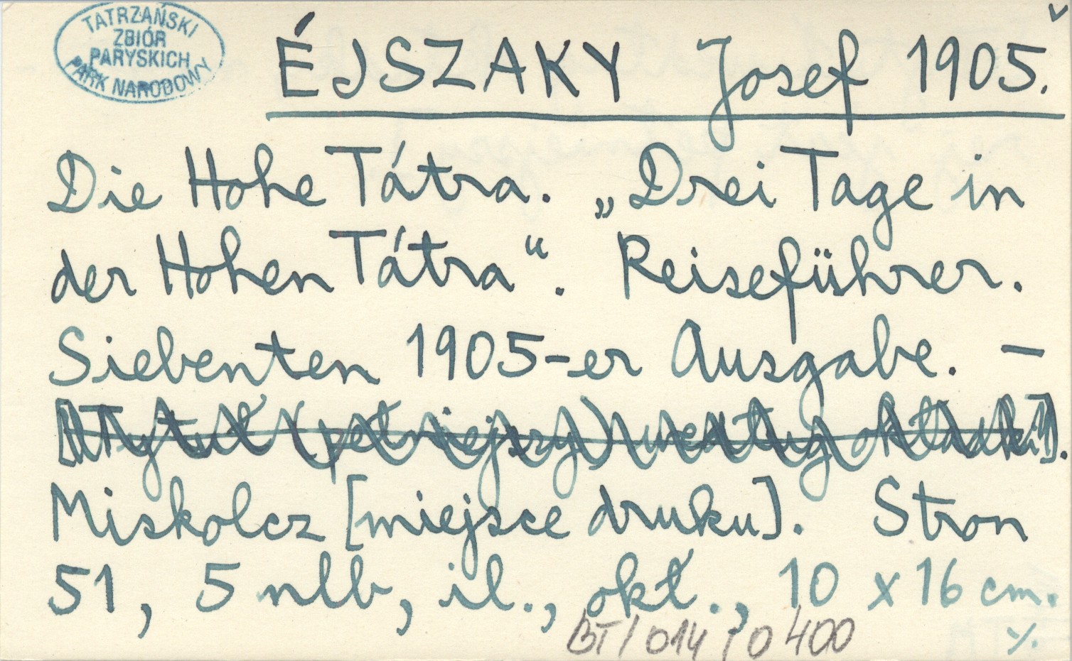 ÉJSZAKY Josef 1905 Die Hohe Tátra. "Drei Tage In Der Hohen Tátra". Reiseführer. Siebenten 1905-er Ausgabe.