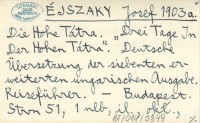 ÉJSZAKY Josef 1913 (1914?) Die Hohe Tatra. (Drei Tage in der Hohen Tatra).