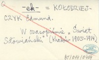 -ek- KOŁODZIEJCZYK Edmund Świat Słowiański (Kraków) 1905-1914.