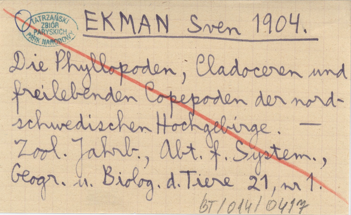 EKMAN Sven 1904 Die Phyllopoden ; Cladoceren und freilebenden Copepoden der nordschwedischen Hochgebirge.