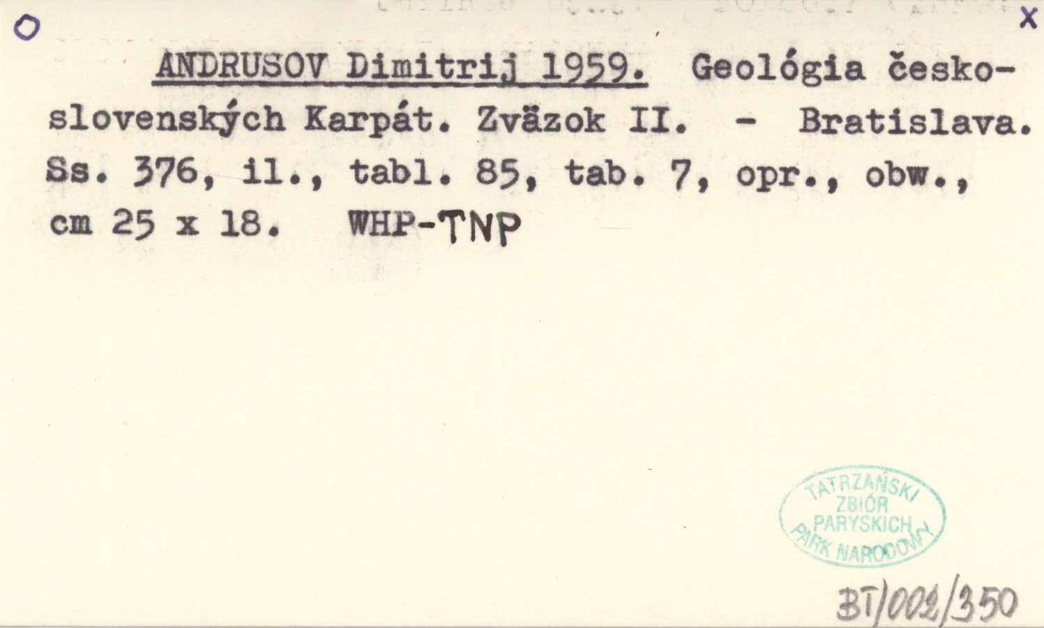 ANDRUSOV Dimitrij 1959 Geológia československých Karpát. Zväzok II.