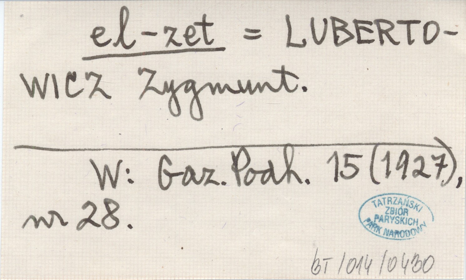 el-zet LUBERTOWICZ Zygmunt Gazeta Podhalańska 15 (1927), nr 28.