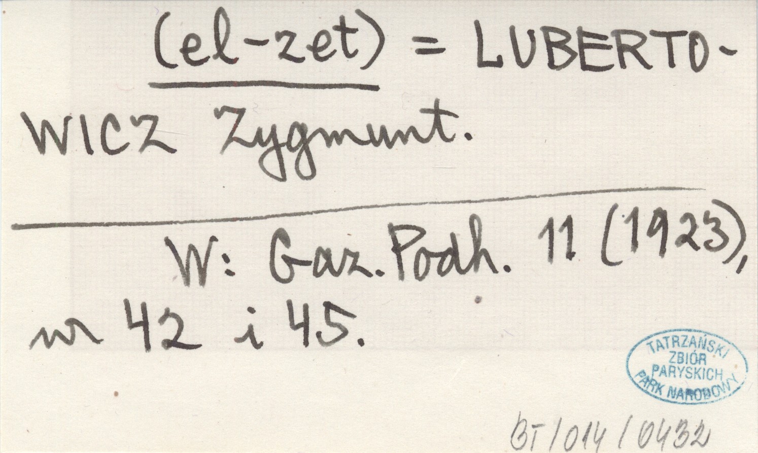 (el-zet) LUBERTOWICZ Zygmunt Gazeta Podhalańska 11 (1923), nr 42 i 45.
