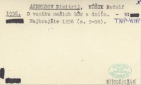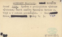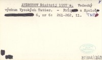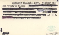 ANDRUSOV Dimitrij 1957 a Vedecký výskum Vysokých Tatier.