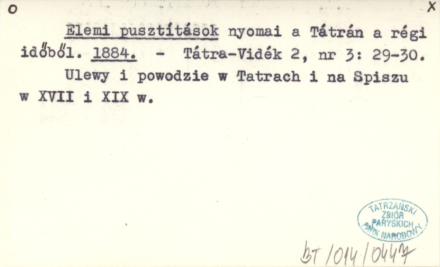 Projekt Digitalizacja fiszek z Bibliografi± Tatr i Podtatrza Witolda Henryka Paryskiego jest finansowany ze ¶rodków Ministra Kultury i Dziedzictwa Narodowego oraz Tatrzańskiego Parku Narodowego.