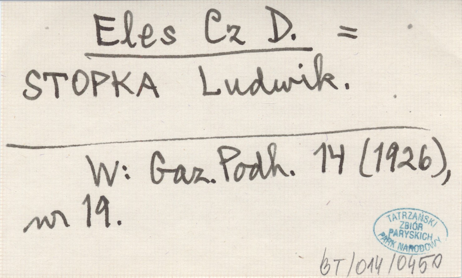 Eles Cz D. STOPKA Ludwik Gazeta Podhalańska 14 (1926), nr 19.