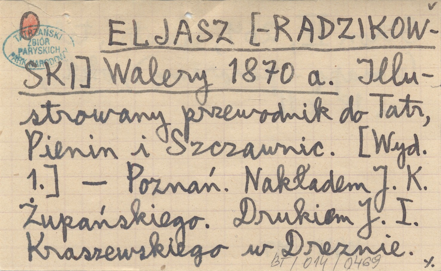 ELJASZ [-RADZIKOWSKI] Walery 1870 a Illustrowany przewodnik do Tatr, Pienin i Szczawnic.