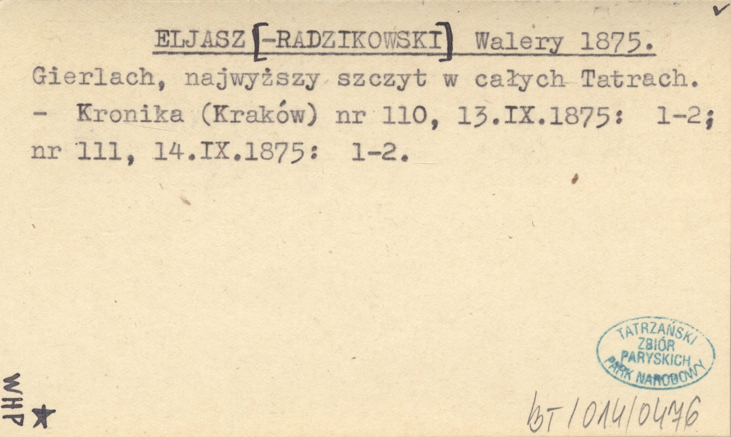 ELJASZ [-RADZIKOWSKI] Walery 1875 Gierlach, najwyższy szczyt w całych Tatrach.
