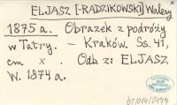 ELJASZ [-RADZIKOWSKI] Walery 1875 a Obrazek z podróży w Tatry.
