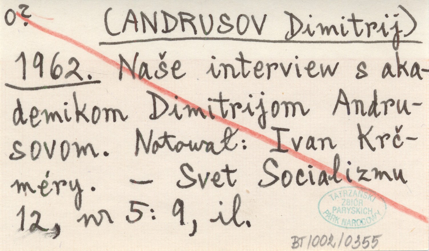 [ANDRUSOV Dimitrij] 1962 Naše interview s akademikom Dimitrijom Andrusovom. Notował: Ivan Krčméry.