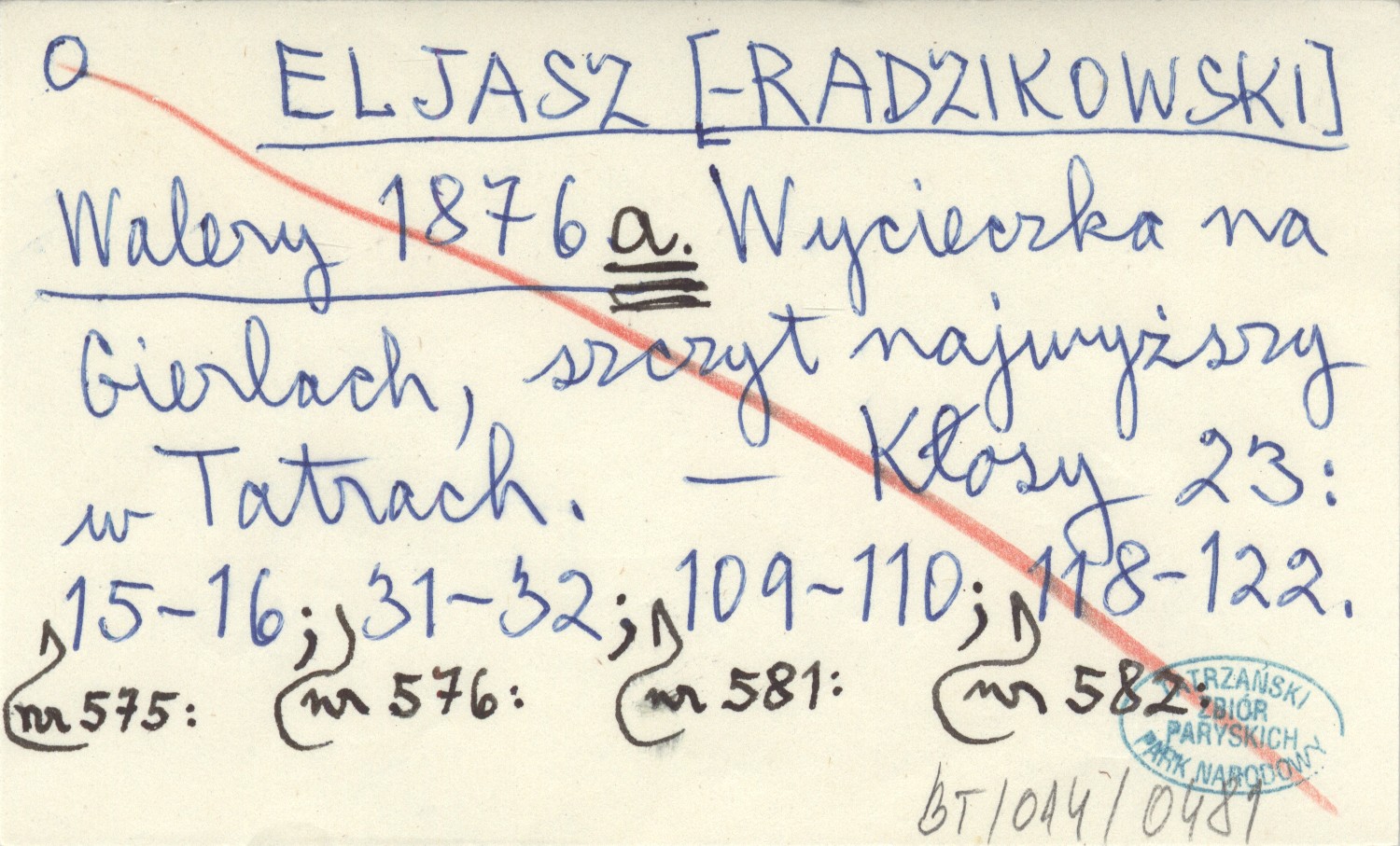 ELJASZ [-RADZIKOWSKI] Walery 1876 a Wycieczka na Gierlach, szczyt najwyższy w Tatrach.
