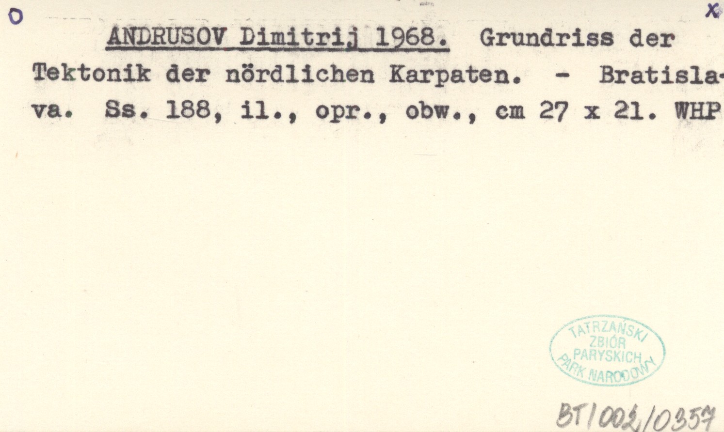 ANDRUSOV Dimitrij 1968 Grundriss der Tektonik der nördlichen Karpaten.