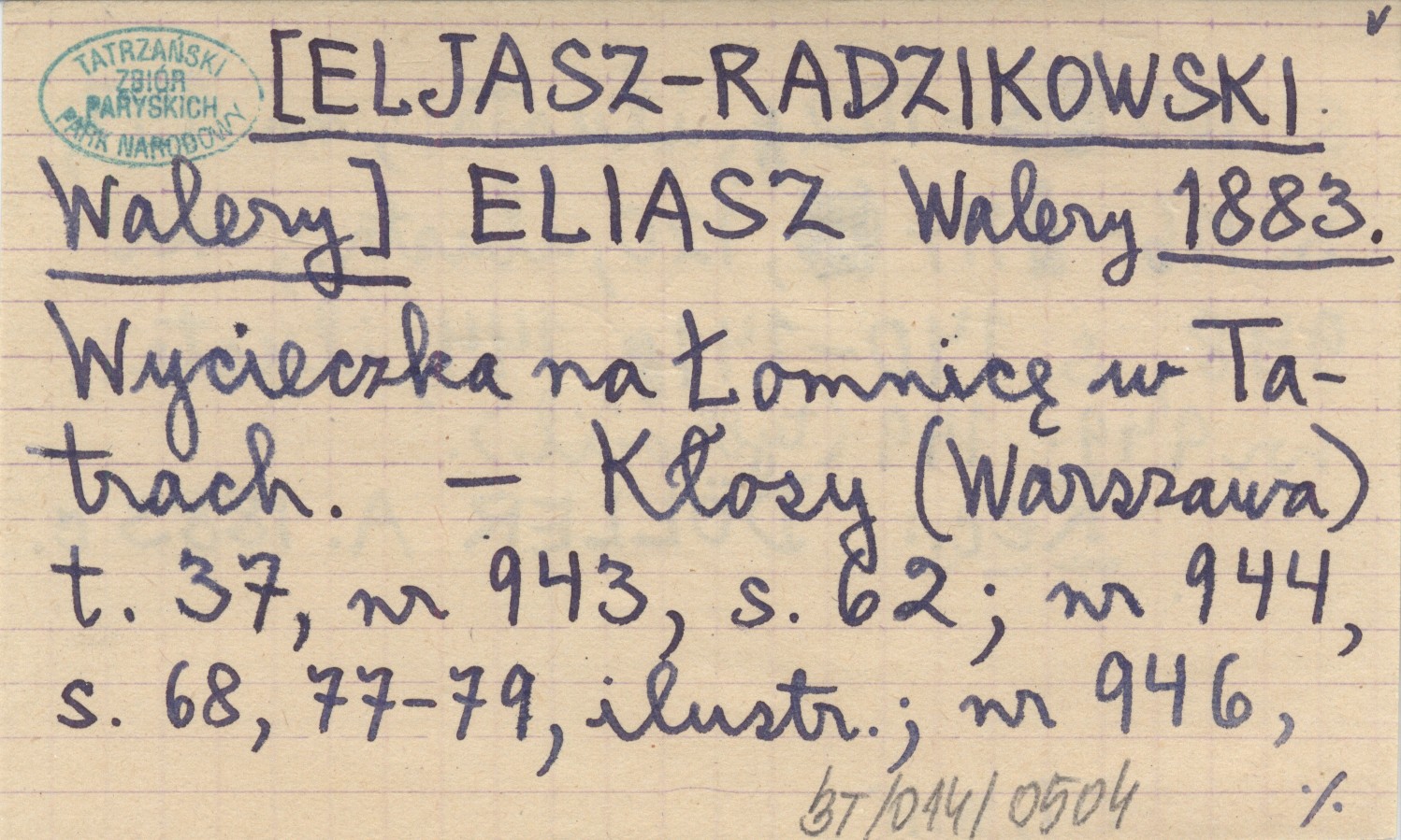 ELIASZ Walery [ELJASZ-RADZIKOWSKI Walery] 1883 Wycieczka na Łomnicę w Tatrach.