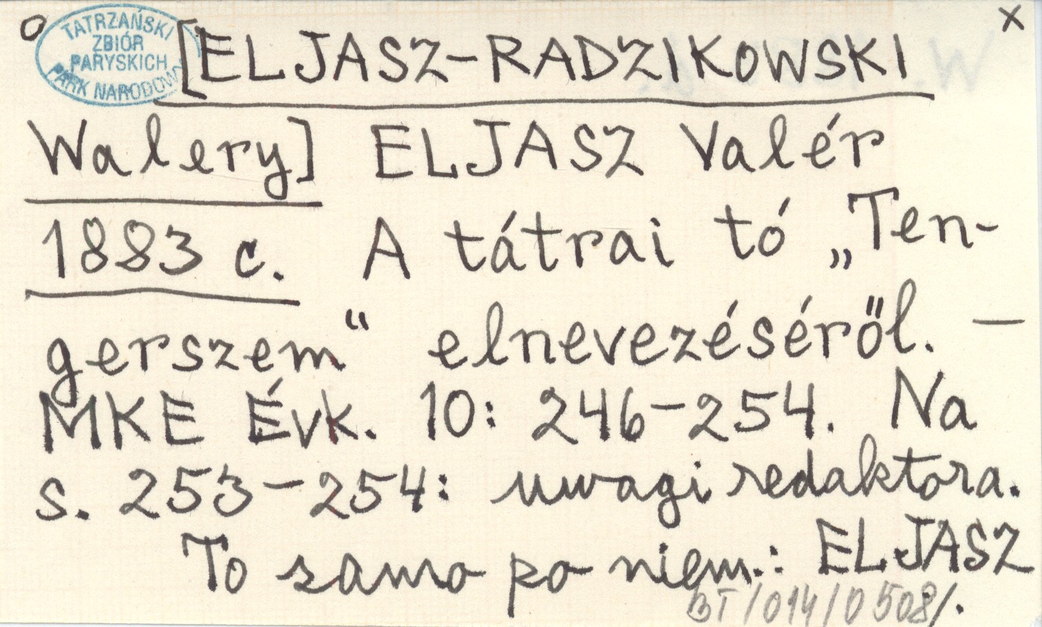 ELJASZ Valér [ELJASZ-RADZIKOWSKI Walery] 1883 c A tátrai tó "Tengerszem" elnevezéséről.