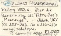 ELJASZ [-RADZIKOWSKI] Walery 1883 d Über die Benennung des Tátra-See's "Meerauge".