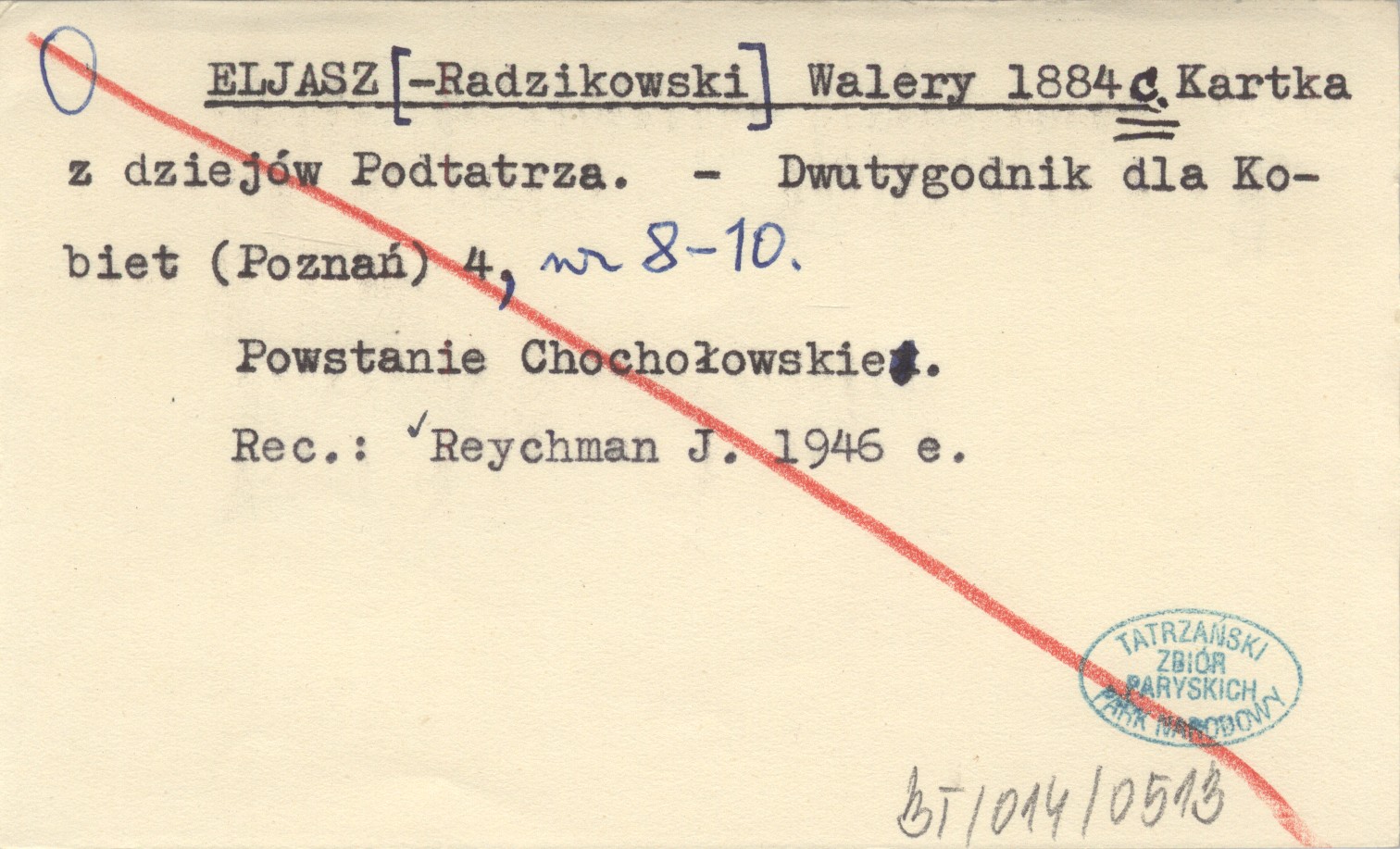 ELJASZ [-RADZIKOWSKI] Walery 1884 c Kartka z dziejów Podtatrza.
