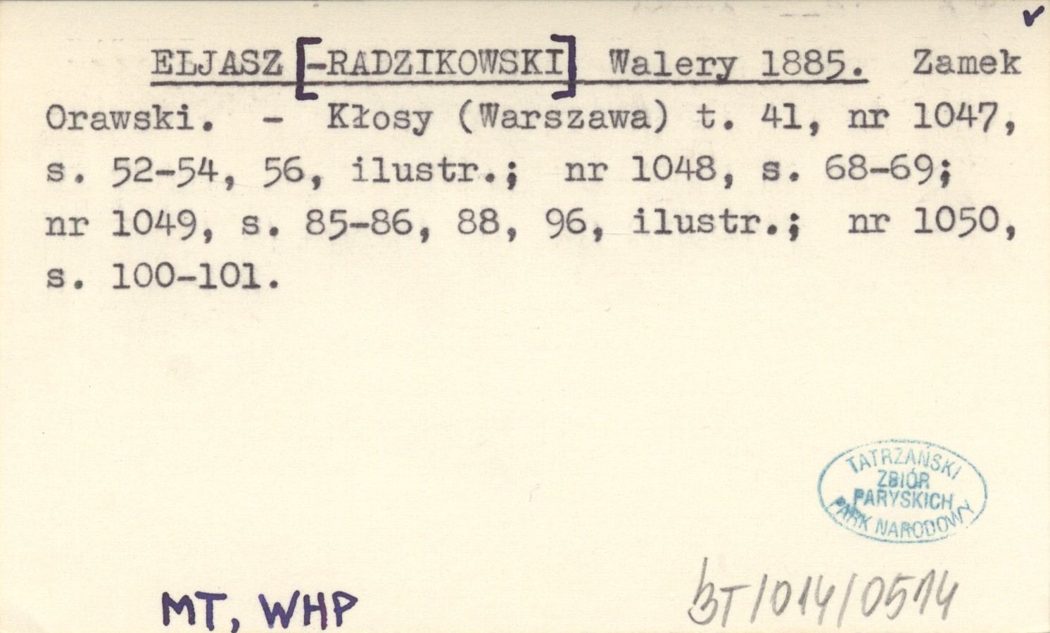 Projekt Digitalizacja fiszek z Bibliografią Tatr i Podtatrza Witolda Henryka Paryskiego jest finansowany ze środków Ministra Kultury i Dziedzictwa Narodowego oraz Tatrzańskiego Parku Narodowego.