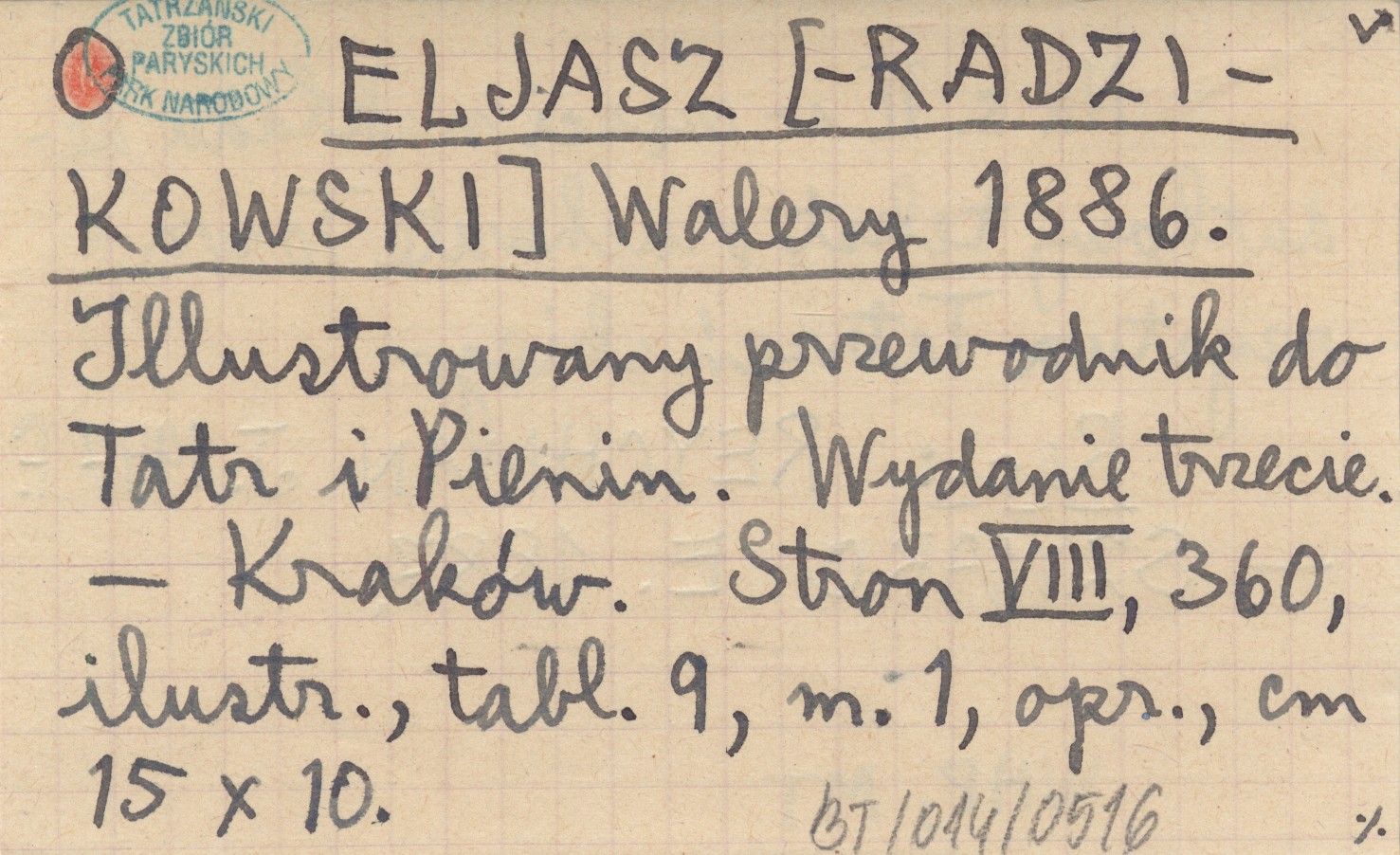 ELJASZ [-RADZIKOWSKI] Walery 1886 Illustrowany przewodnik do Tatr i Pienin.