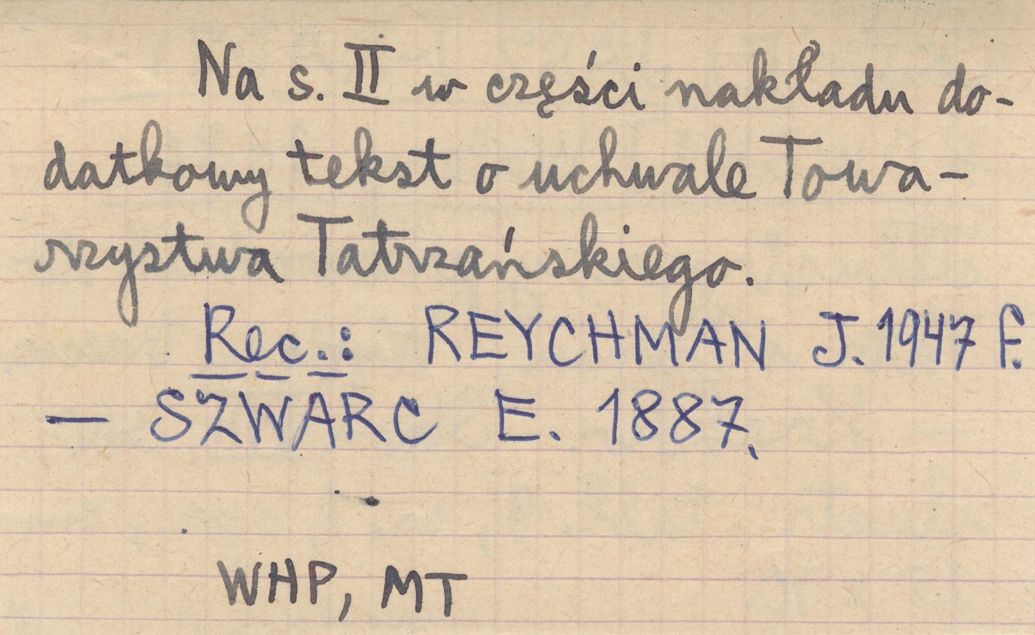 WYD: 3 Kraków , VIII, 360 s., il., 9 k., 1 mapa, opr., 15x10 cm. Na s. II w części nakładu dodatkowy tekst o uchwale Towarzystwa Tatrzańskiego. REC: REYCHMAN J. 1947 f ; SZWARC E. 1887 ;