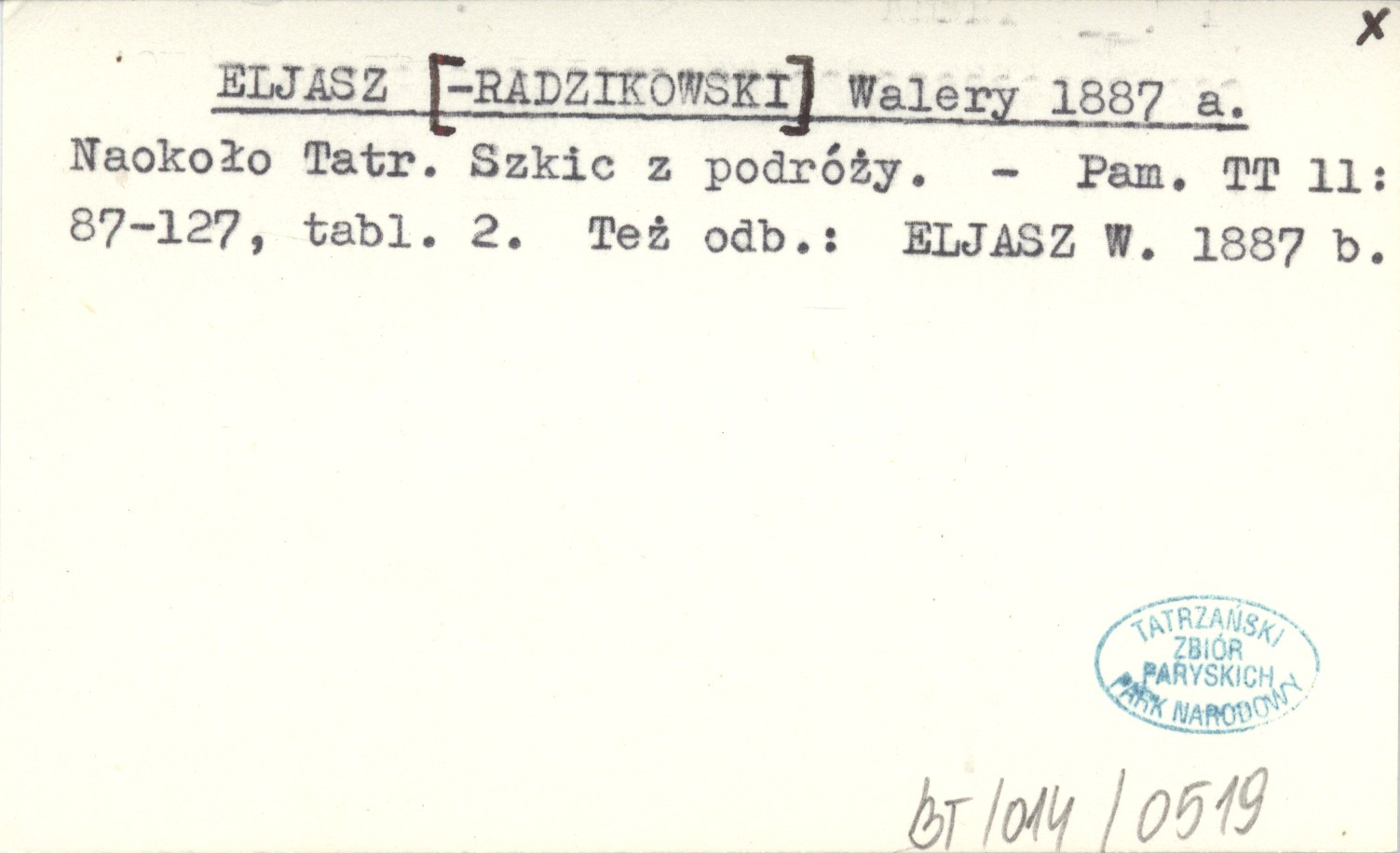 ELJASZ [-RADZIKOWSKI] Walery 1887 a Naokoło Tatr. Szkic z podróży.