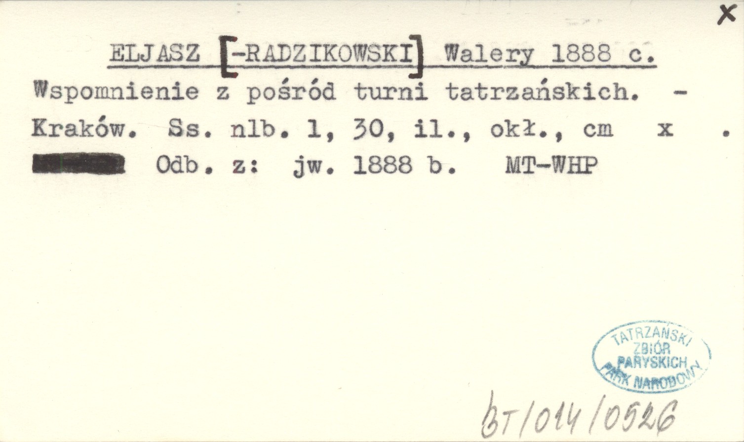 ELJASZ [-RADZIKOWSKI] Walery 1888 c Wspomnienie z pośród turni tatrzańskich.