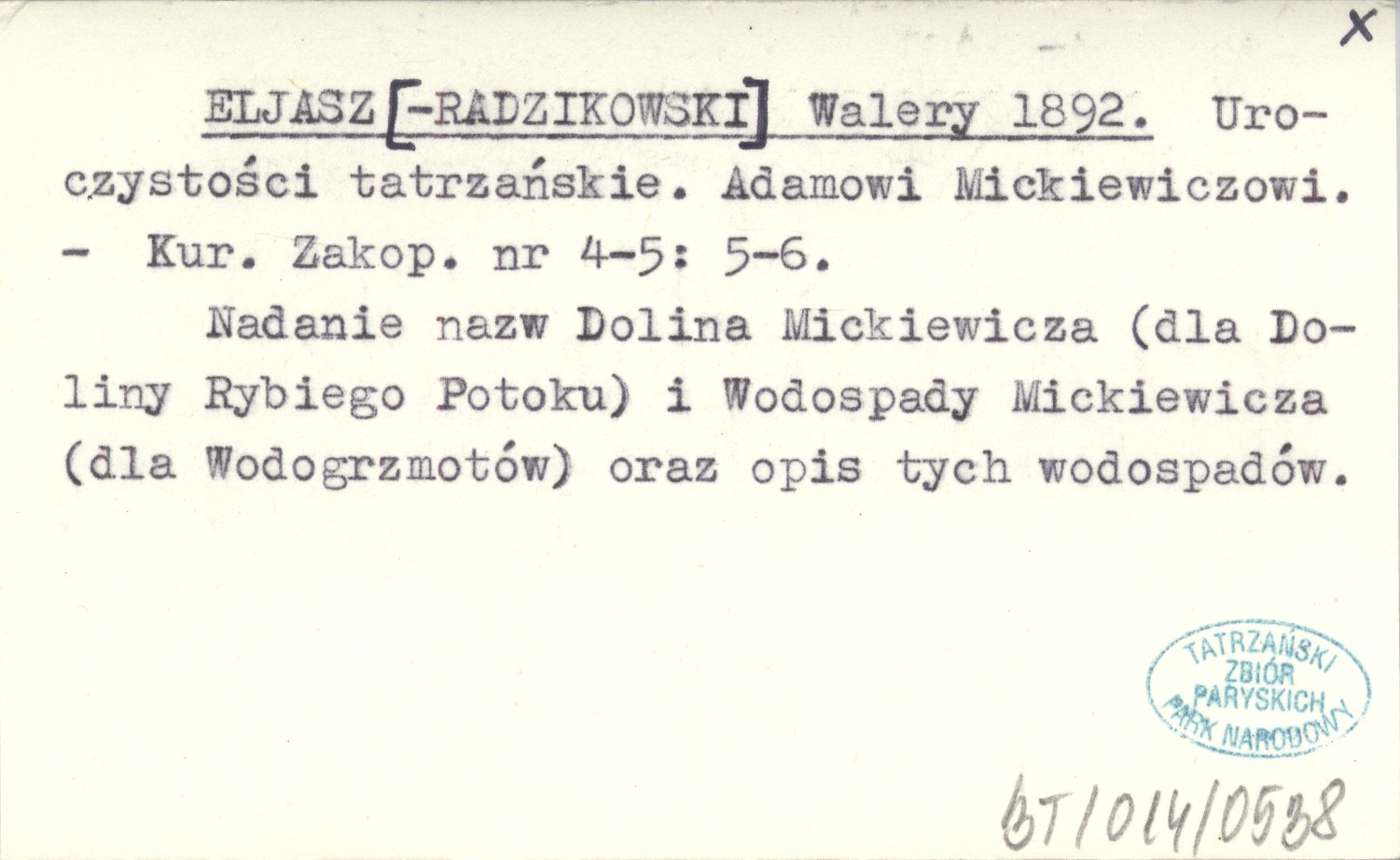 ELJASZ [-RADZIKOWSKI] Walery 1892 Uroczystości tatrzańskie. Adamowi Mickiewiczowi.