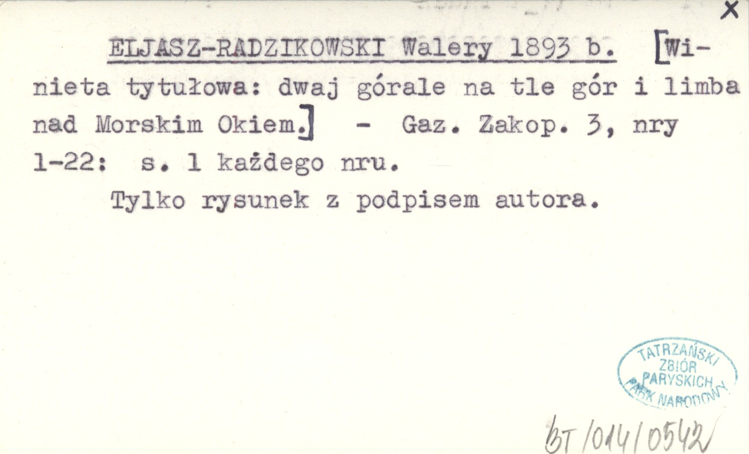 Gazeta Zakopiańska, 3, nr 1-22: s. 1 każdego numeru. Tylko rysunek z podpisem autora.