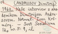 [ANDRUSOV Dimitrij] 1962 Naąe interview s akademikom Dimitrijom Andrusovom. Notował: Ivan Krčméry.