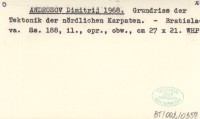 ANDRUSOV Dimitrij 1965 Geológia československých Kárpat. Zväzok III.
