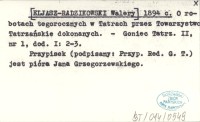 [ELJASZ-RADZIKOWSKI Walery] 1894 c O robotach tegorocznych w Tatrach przez Towarzystwo Tatrzańskie dokonanych.