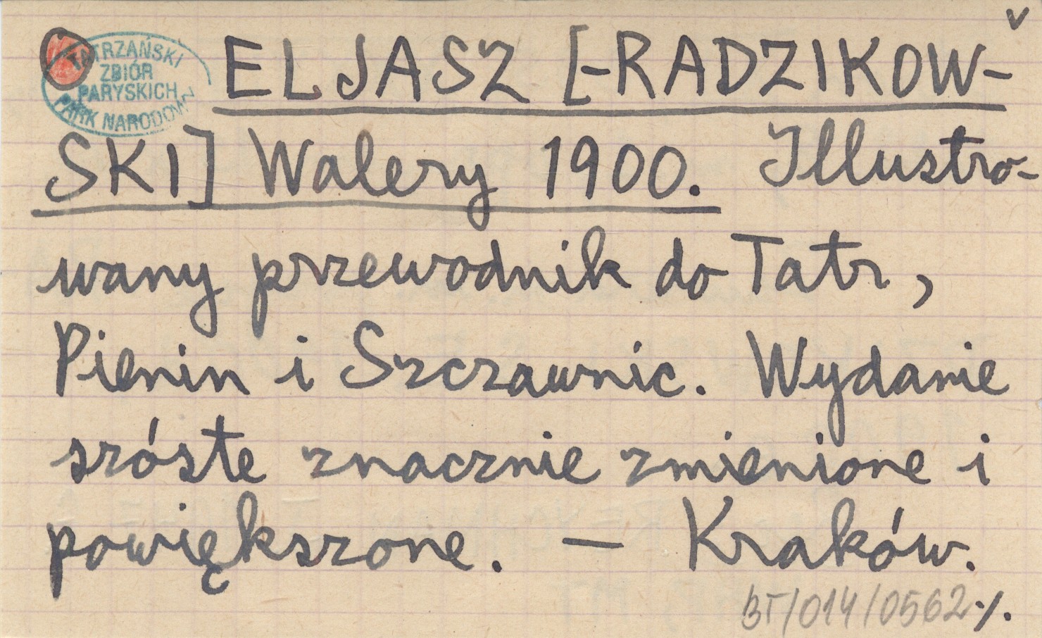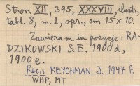 WYD: 6 zmien. i uzup. Kraków , XII, 395, XXXVIII s., il., 8 k., 1 mapa, opr., 15x10 cm. Zawiera m. in. pozycję: RADZIKOWSKI S. E. 1900 d, 1900 e REC: REYCHMAN J. 1947 f ; KLEMENSIEWICZ Z. 1907 b ; KORDYS R. 1911 f ;