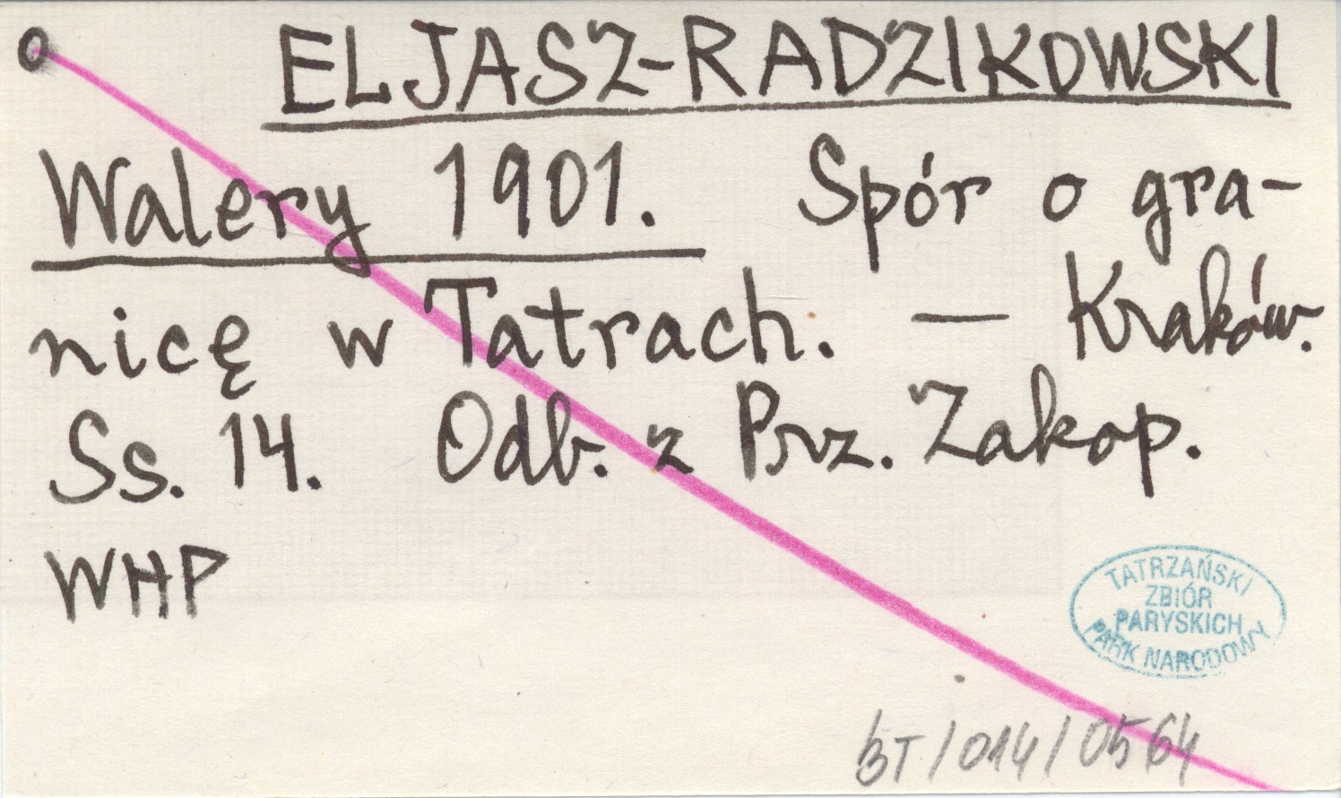 ELJASZ-RADZIKOWSKI Walery 1901 Spór o granicę w Tatrach.