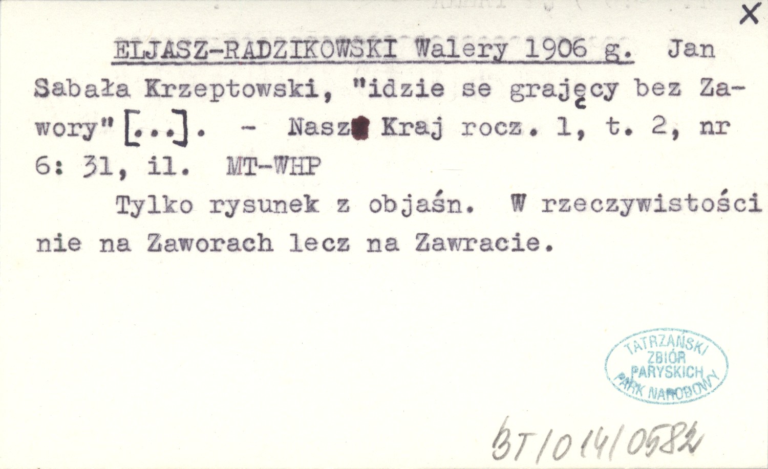 ELJASZ-RADZIKOWSKI Walery 1906 g Jan Sabała Krzeptowski, "idzie se grajęcy bez Zawory" [...].