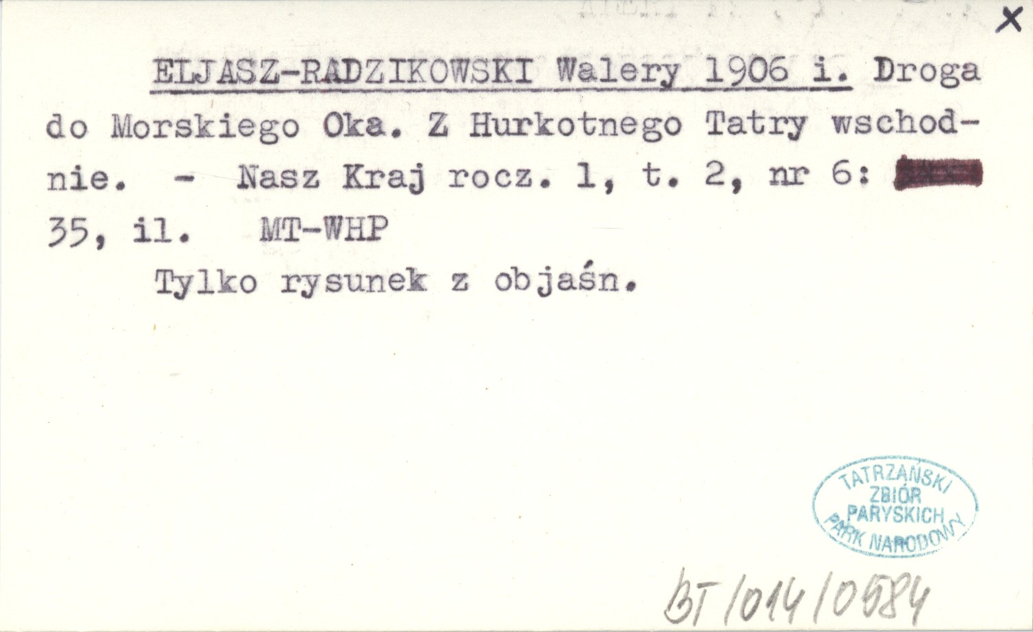 ELJASZ-RADZIKOWSKI Walery 1906 i Droga do Morskiego Oka. Z Hurkotnego Tatry wschodnie.