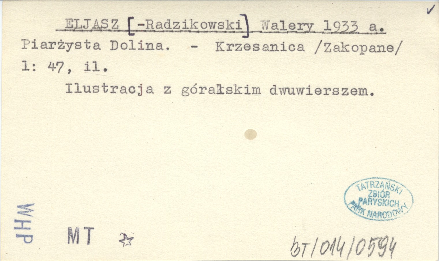 ELJASZ [-RADZIKOWSKI] Walery 1933 a Piarżysta Dolina.