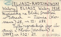 ELIASZ Walery [ELJASZ-RADZIKOWSKI Walery] 1938 Wycieczka na Polski Grzebień w Tatrach.