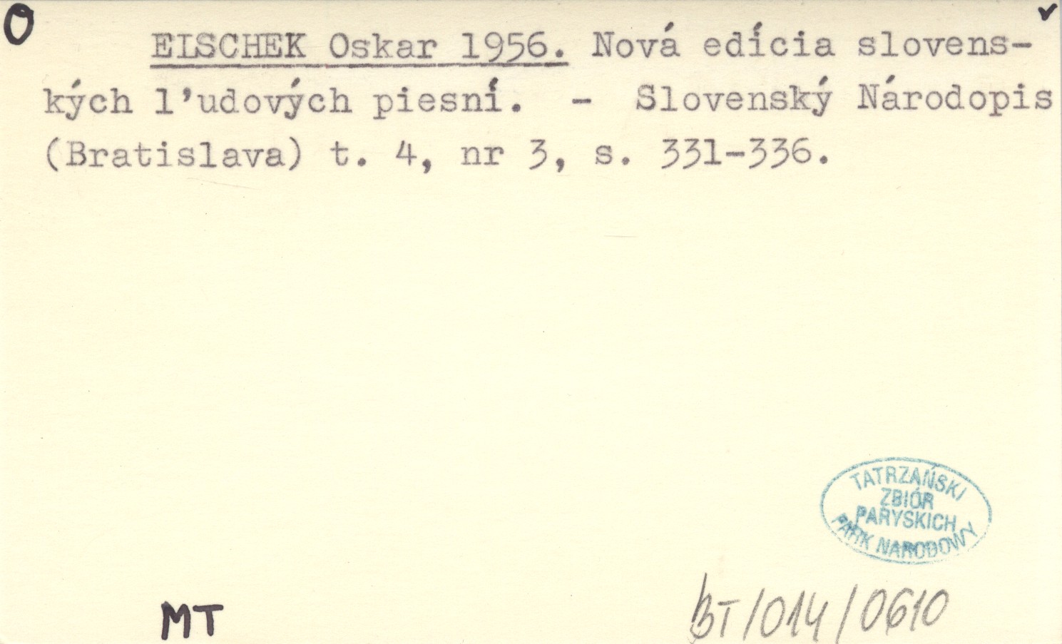 ELSCHEK Oskar 1956 Nová edícia slovenskęch ”udovęch piesní.