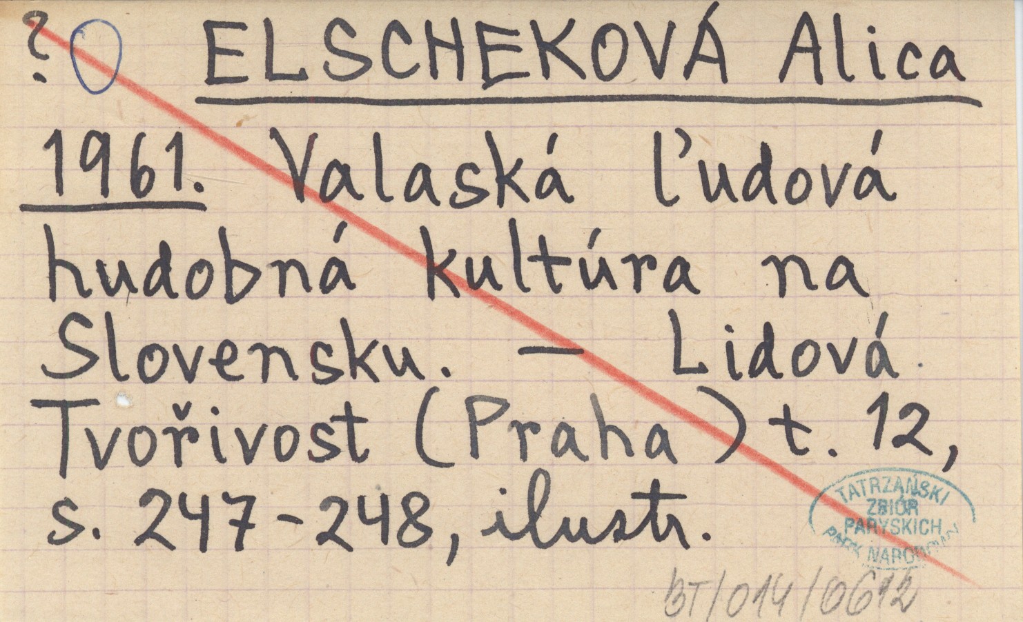 ELSCHEKOVÁ Alica 1961 Valaská ľudová hudobná kulturá na Slovensku.